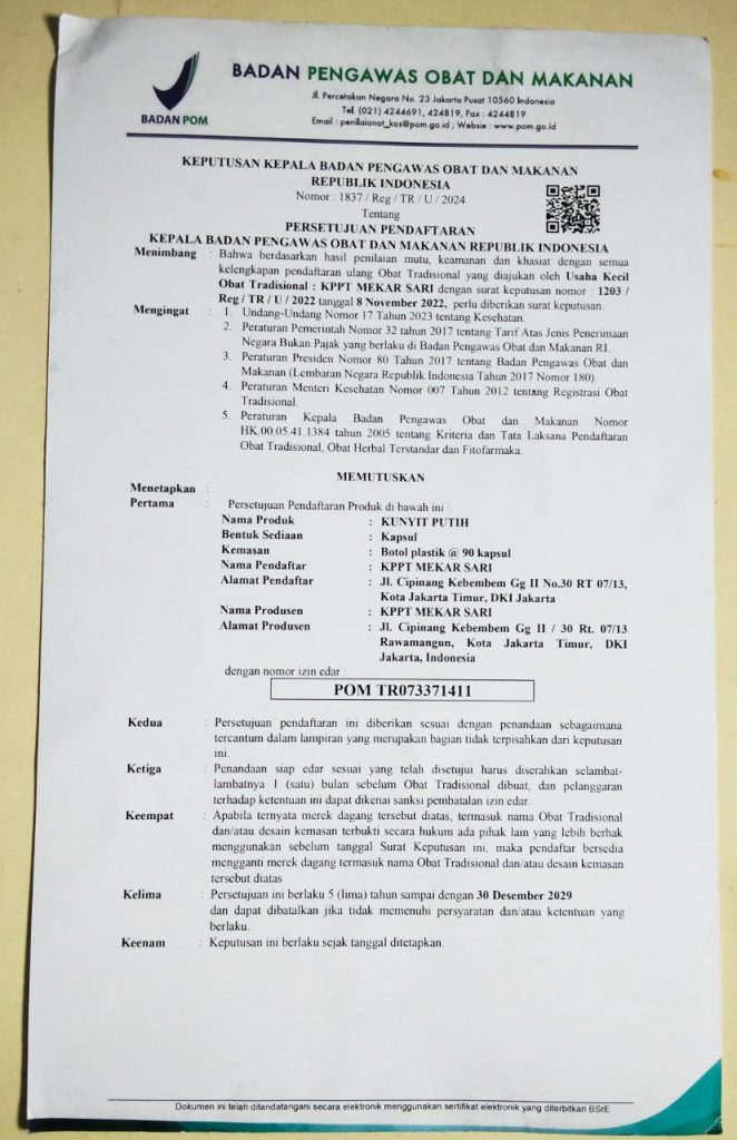 - CAI : Curcumin Anti Inflamasi. Sebagai anti peradangan dalam.